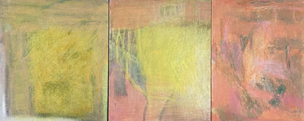 Rentré chez moi, je réalise mes préparations : quelques grammes de « couleur » dilués dans une grande quantité de liant acrylique ; la « couleur » de ces laits translucides est donc extrêmement faible, à la limite du discernable, de l’identifiable lorsqu’ils sont employés en films minces.